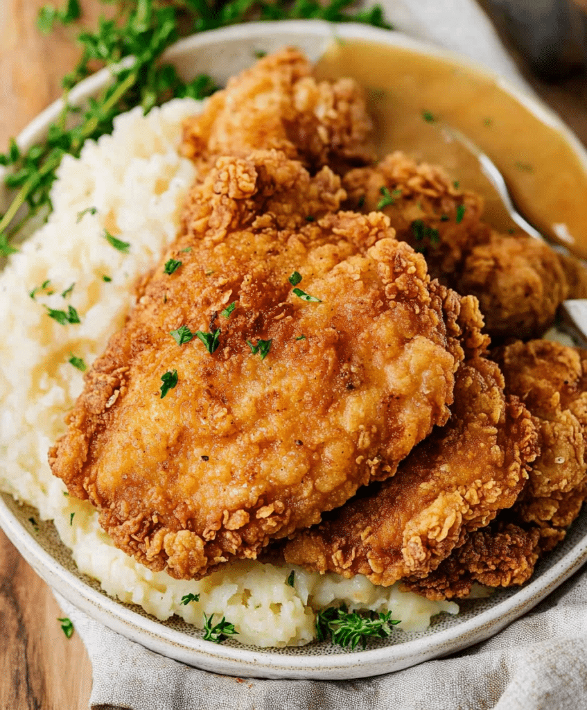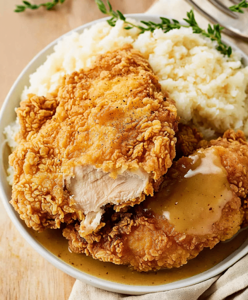 When I was younger, country fried chicken was a staple at family gatherings. I still remember the sound of sizzling oil as my grandma worked her magic in the kitchen. The smell of the seasoned chicken frying would fill the house, and all of us kids would hover around, hoping to snag a piece right out of the pan (and occasionally succeeding). Grandma always served hers with mashed potatoes and gravy, and to this day, I can’t imagine enjoying this chicken without a generous side of mashed potatoes to soak up all that flavor. Recreating this dish at home always brings me back to those warm, joyful days. Now, every time I make it, it’s like a little tribute to her cooking.
