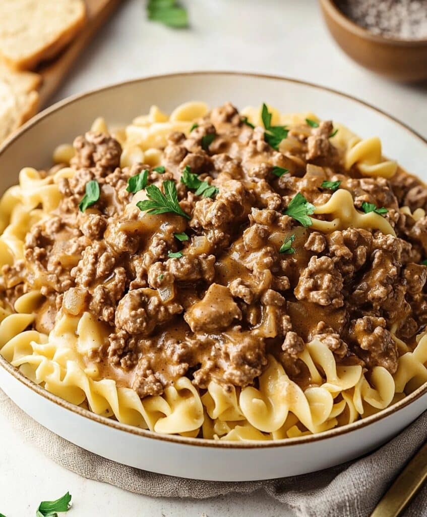 This Hamburger Stroganoff recipe is quick, easy, and full of creamy, comforting flavors. Perfect for busy weeknights!